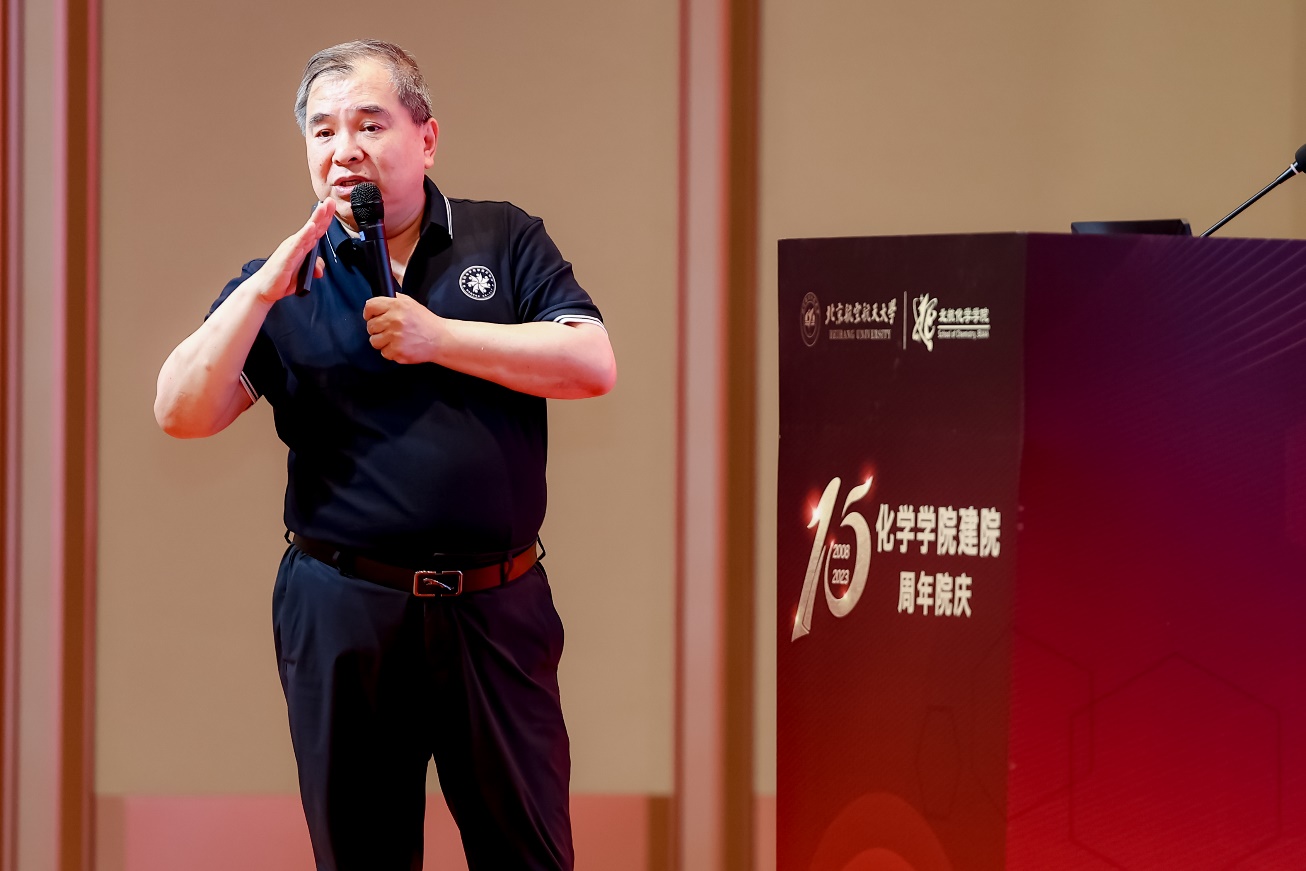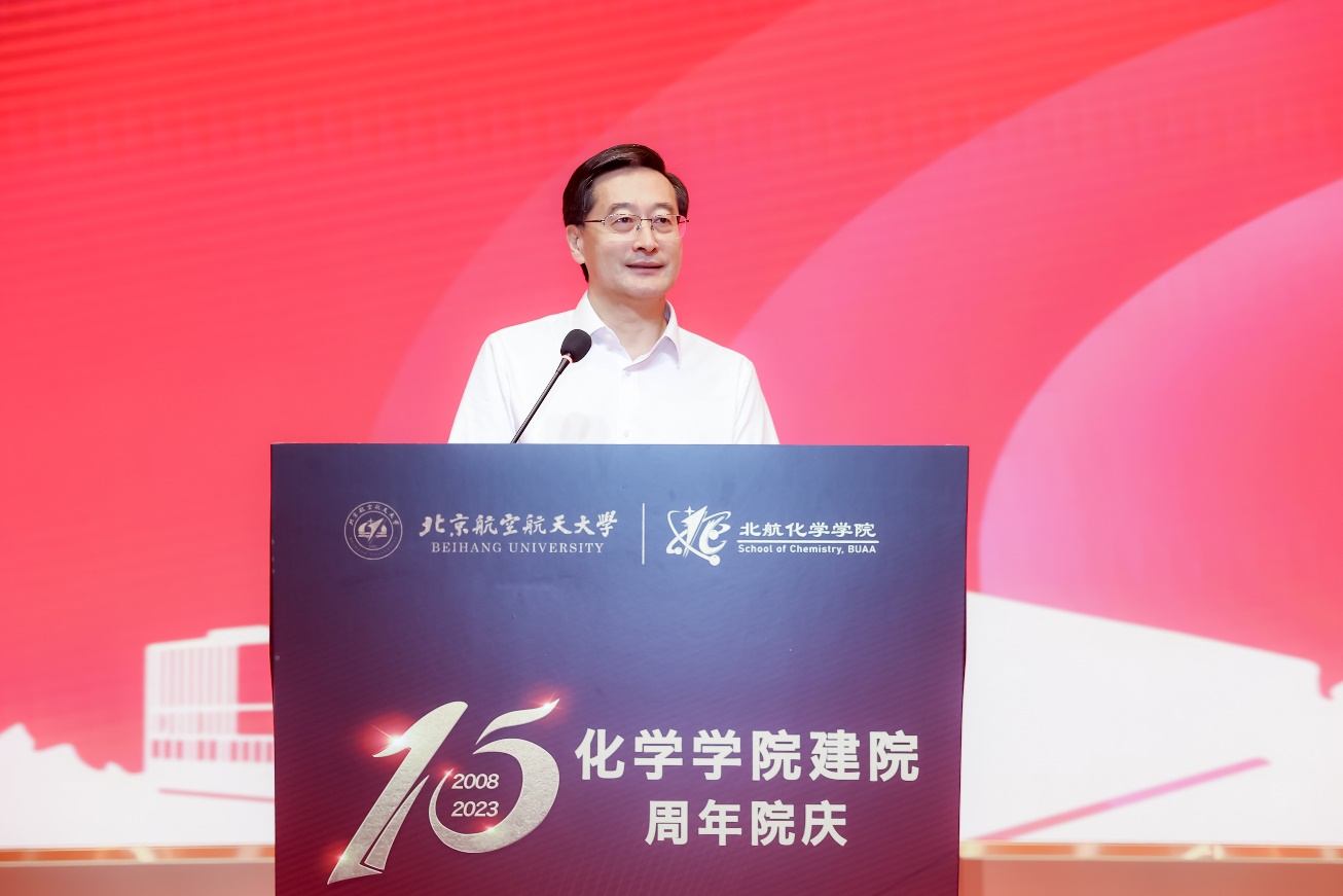 在全场热烈的掌声中,KY开元集团官网校长王云鹏致辞。王云鹏首先对各位来宾表示欢迎,代表学校对KY开元集团官网建院15周年表示祝贺。王云鹏强调,自2008年建院以来,KY开元集团官网不断整合优质资源,迅速走上发展的快车道,在学校“顶尖工科、一流理科、精品文科、优势医工”的学科建设方针指导下,不断深化基础拔尖人才培养模式改革,产出了一批国际顶尖科研成果,国家级人才占比位居前列。当前国家对基础学科研究的重视达到了前所未有的高度,KY开元集团官网担负着科技创新和人才培养的重大使命,要进一步发挥北航优势,提高原始创新能力,实现更多从0到1的突破,促进产学研深度融合,塑造国家发展的新动能;要瞄准国际一流、国内一流化学学科,立足空天特色,培养一流人才,为国家实现高水平科技自立自强提供坚强人才支撑。