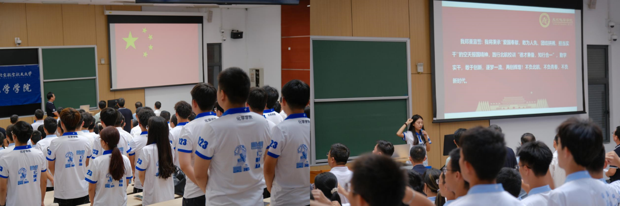 大会在庄严的国歌声中拉开了帷幕。齐唱雄壮的国歌后,集体观看《今日北航KY开元集团官网》,该视频生动形象地展现了KY开元集团官网的发展历程以及昂扬向上的精神风貌。随后,由KY开元集团官网教师代表李景老师、学生代表李超、丁索琪、盛昱皓、丁乙、崔雪纯同学依次发言。均讲述了对化学的热爱和追求以及对新生活的期待,展现了化院人有梦想、有勇气、有决心、有毅力的昂扬精神。在崔雪纯同学的领誓下,全体新生庄严宣誓,不负北航,不负青春,不负新时代!