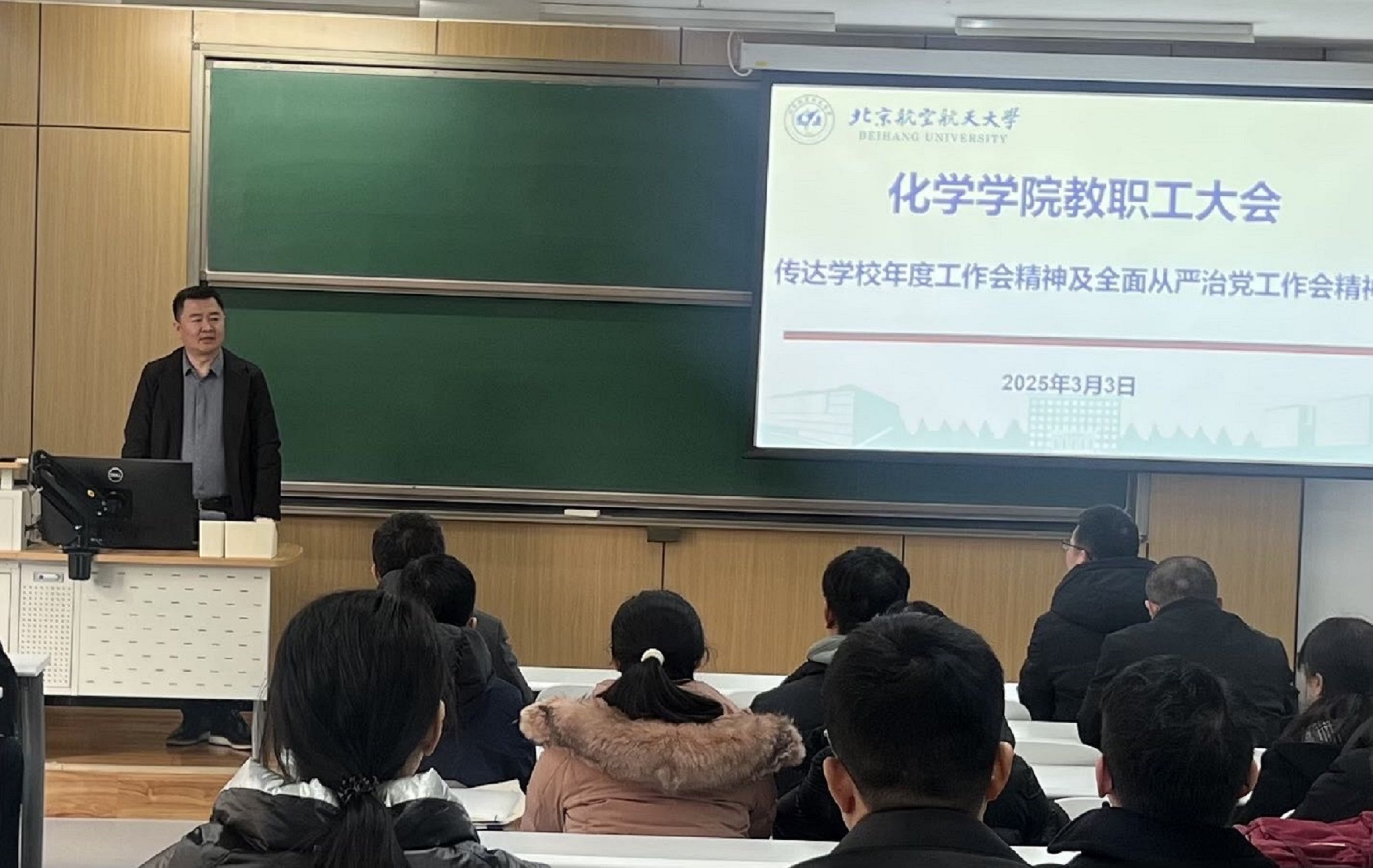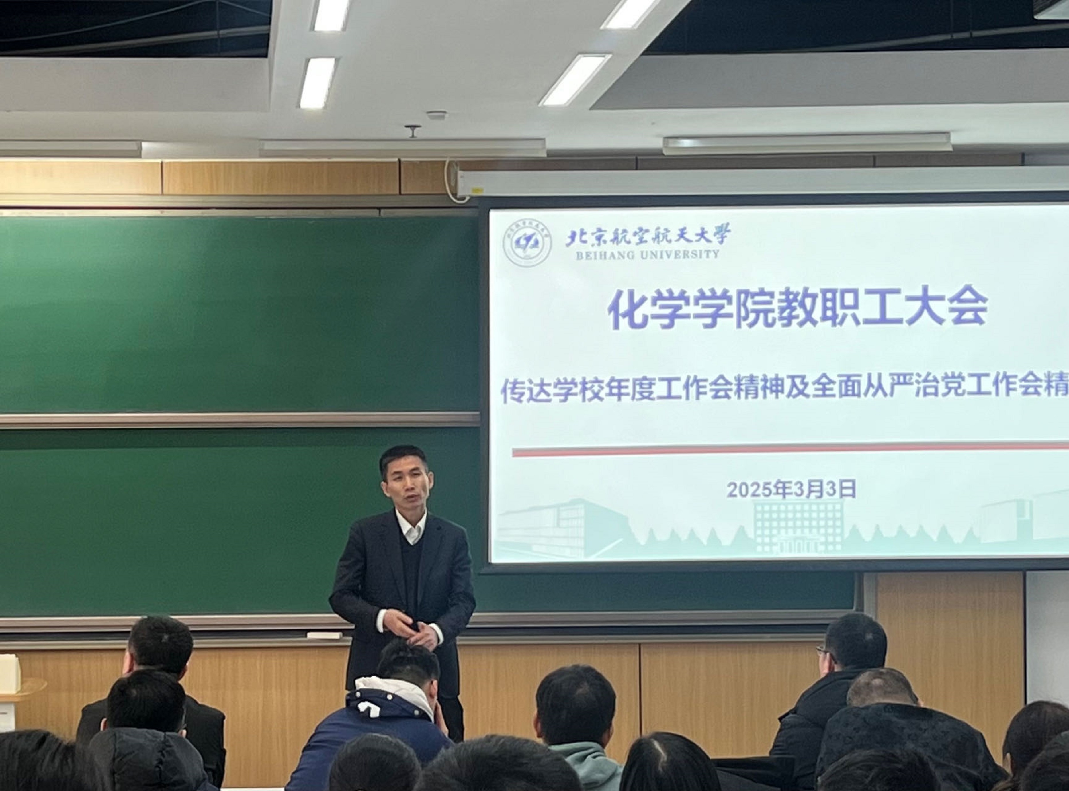 学院党委书记刘克松传达了学校全面从严治党工作会议精神,要求全院教职工严守政治纪律,深化党风廉政建设,营造风清气正的育人环境。会议特别强调,要不断完善内部治理体系,强化监督执纪问责,以高质量党建引领学院事业高质量发展。党委书记在总结中指出,2025年是学校“十四五”规划攻坚之年,全院上下需以学校年度工作会精神为指引,锚定目标任务,凝聚共识、真抓实干。他号召全体教职工发扬“敢为人先、追求卓越”的精神,为服务国家战略需求和学校“双一流”建设作出更大贡献。