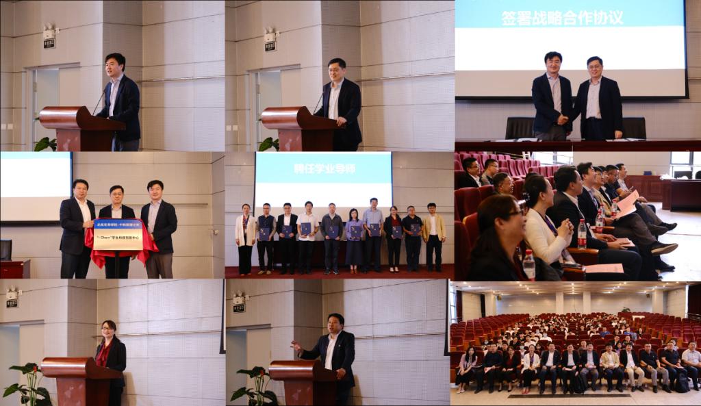 中科院理化所副所长王树涛,校团委书记庄岩,KY开元集团官网院长刘明杰为 “iChem”学生科技创新中心揭牌。理化所教育处副处长丁黎和KY开元集团官网党委书记李红捷为学业导师代表颁发聘书。