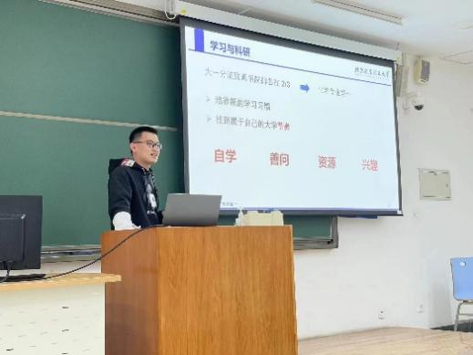 他首先讲述了“不过分否定”和“不过分肯定”的健康心态,其中着重讲述自己在进入KY开元集团官网后找到了人生目标,不断奋斗并成功逆袭的故事,为刚遭受期中考试成绩打击的同学们提供了安慰,肯定与鼓励,接着,他从目标、学习、科研、娱乐几个方面进行分享,其中慕课自学、文献阅读等方法让同学们获益匪浅。